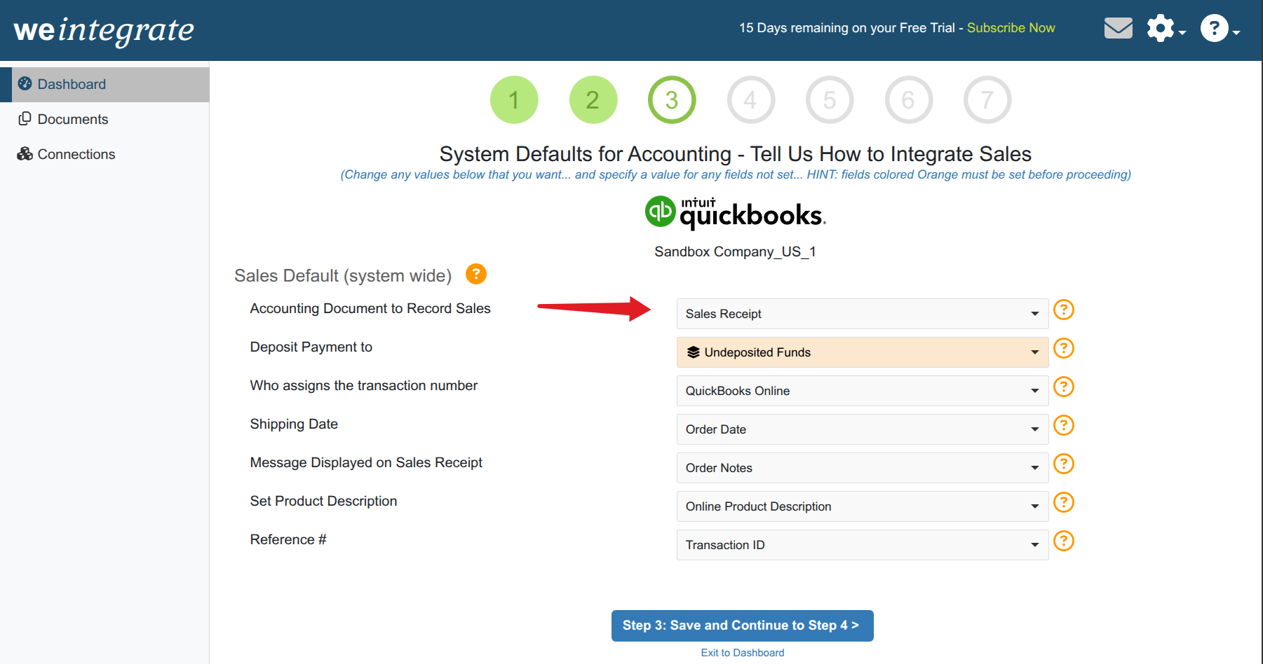 This system wide Sales Defaults >> Accounting Document to Record Sales setting controls the document type that will be used within QuickBooks Online (QBO) for any Shopify store connection’s sales orders that are integrated by WeIntegrate. The available choices to select from are: